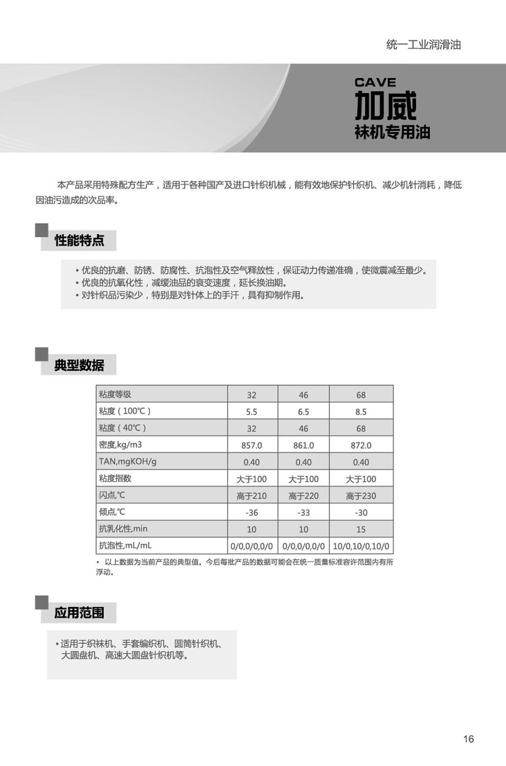 加威襪機(jī)專用油類別:統(tǒng)一工業(yè)潤滑油